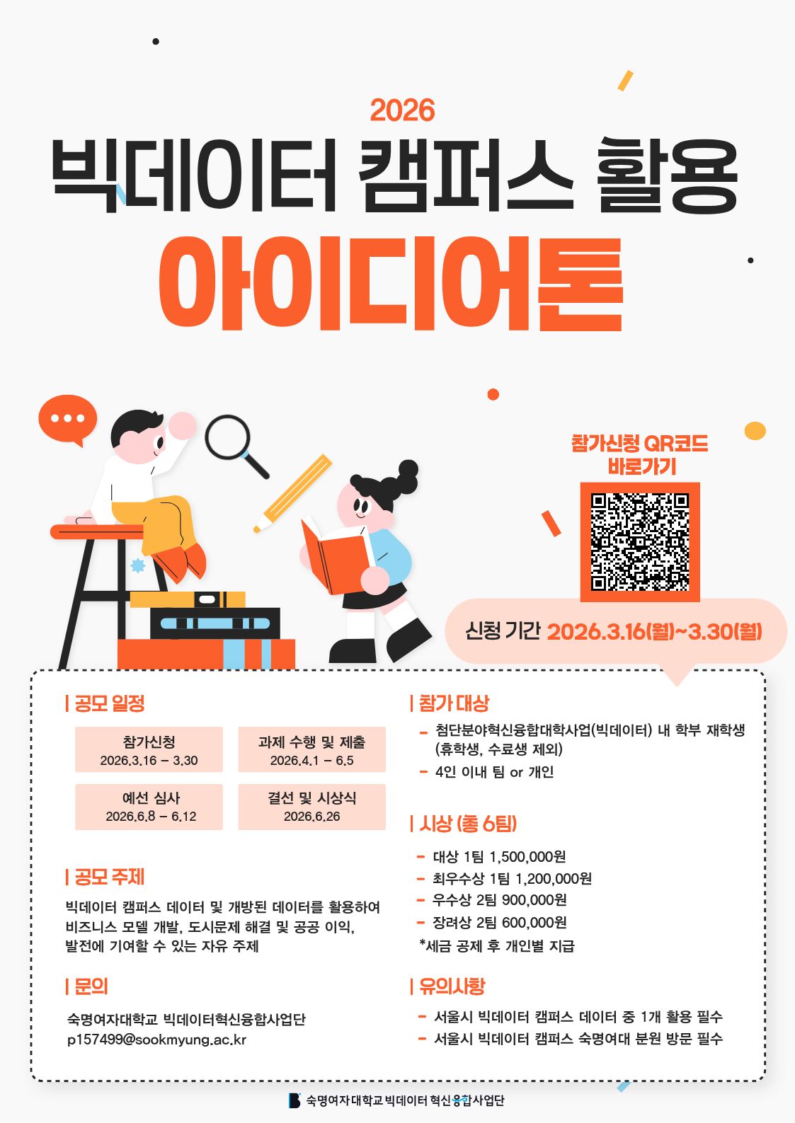 - 예선 결과 안내 : 2026.6.15.(월) * 숙명여대 빅데이터사업단 홈페이지 공지 및 개별 연락